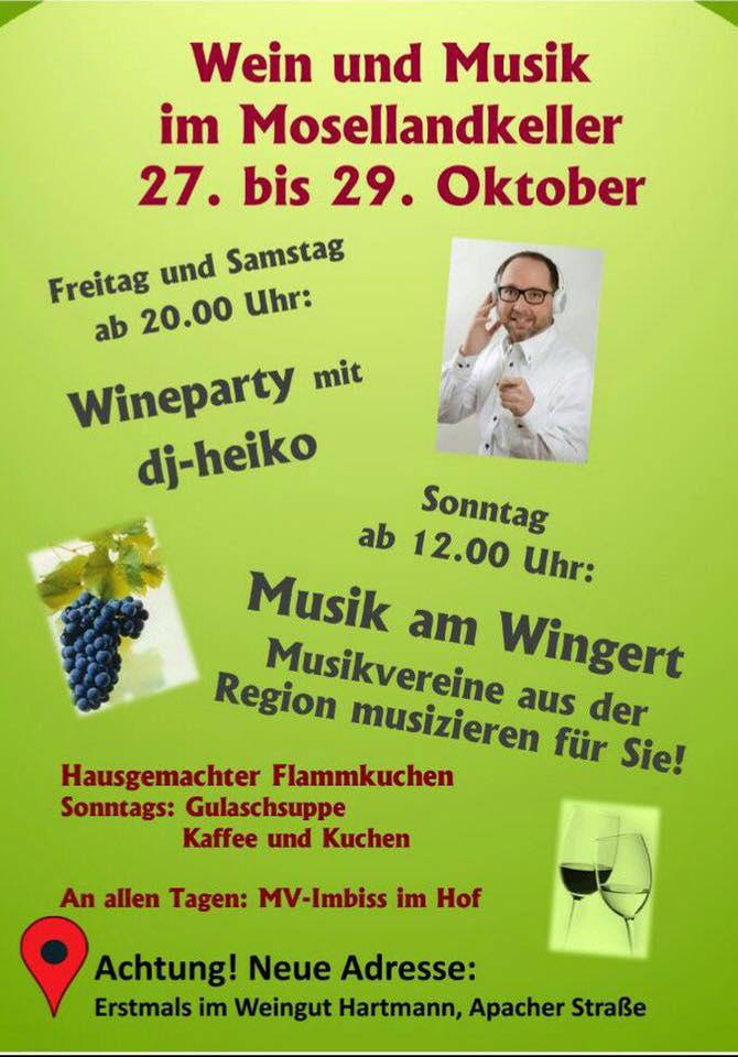 Unter dem Motto „Wein und Musik“ laden wir Sie herzlich ein, uns im neuen „MOSELLANDKELLER“ in der Apacher Straße in Perl zu besuchen.